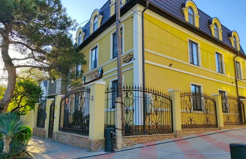 Размещается в трехэтажном здании с небольшой закрытой территорией. Над входной группой раскинулась старая сосна. Фасад оформлен в стиле европейских особняков. Отдыхающим предоставляются номера четырех категорий. В комнатах от 2 до 4 мест. В стоимость проживания входят пляжные полотенца. За отдельную плату можно запросить в номер детскую кроватку. Напротив отеля есть продуктовый магазин и столовая. До пляжа «2к25» идти 5 минут.