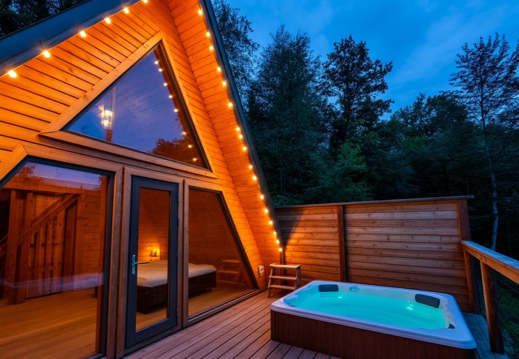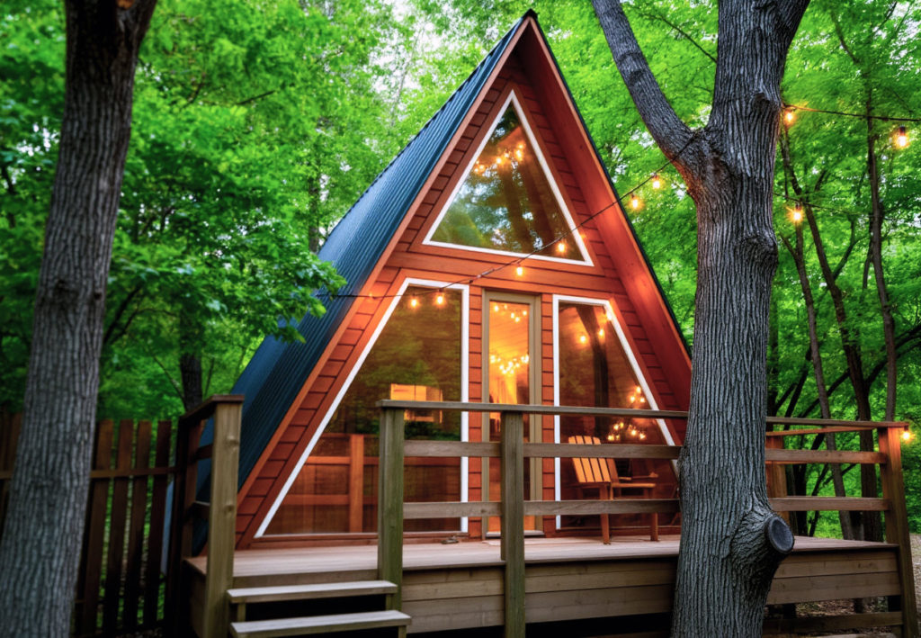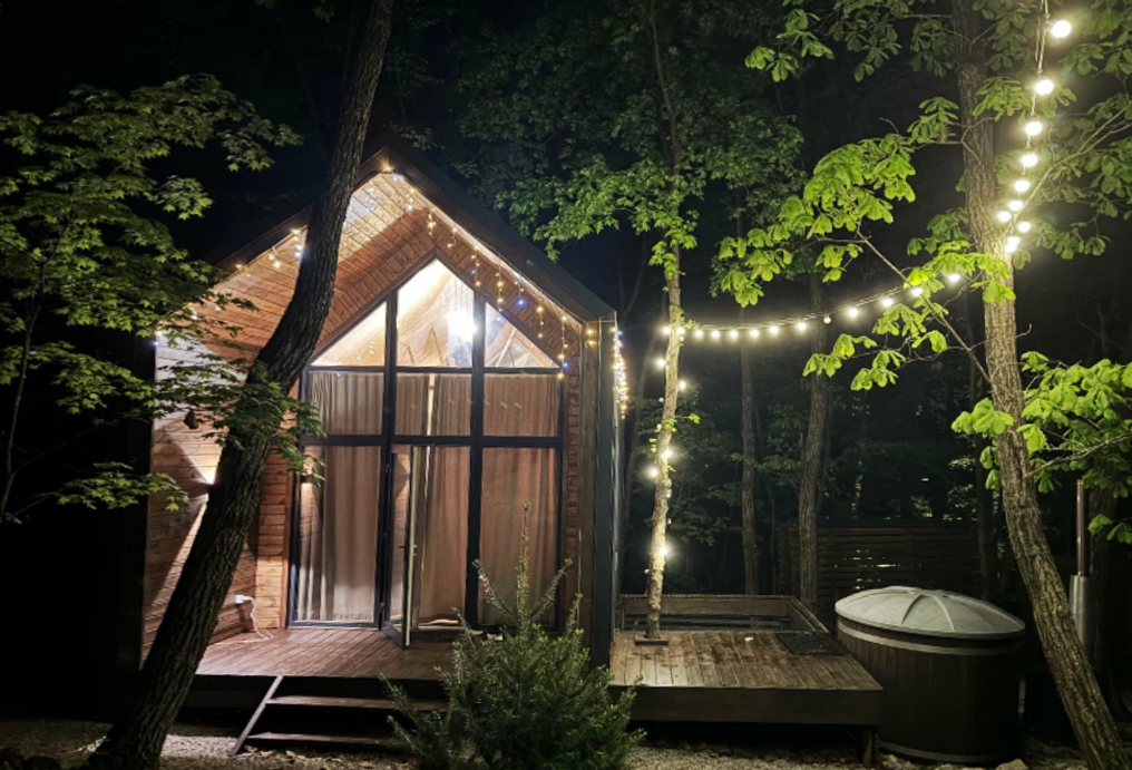 Глэмпинг с треугольными домиками располагается возле поселка Рыбачий. Вокруг растет красивый дубовый лес. Коттеджи оснащены системами климат-контроля и обогревателями. Из электроники в наличии телевизоры. Окна выходят на ухоженную дворовую территорию. Около домика есть бочка фурако. Пользование купелью уже включено в стоимость проживания. Для приготовления блюд на улице предоставляют портативные угольные грили.